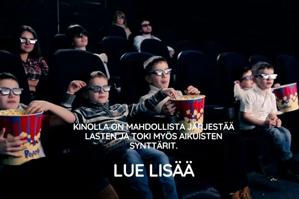 Kino Lumossa on mahdollista järjestää lasten ja toki myös aikuisten synttärit. Synttäripakettiin kuuluu yksityiskäyttöön VIP-tila, joka on käytössä ohjatusti 45 min ennen elokuvan alkua.